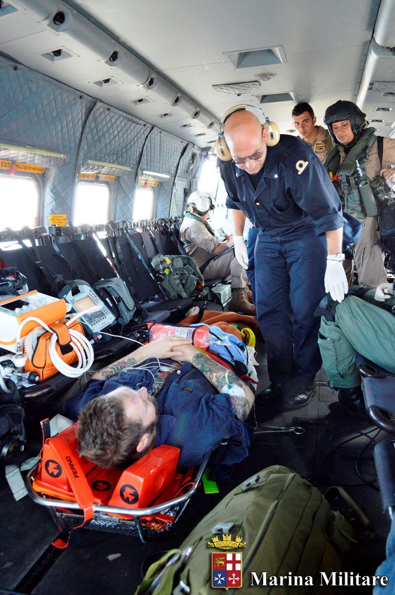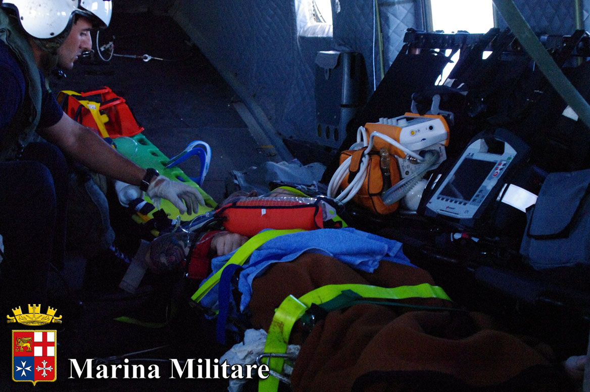 La richiesta di soccorso è giunta alla sala operativa del Quartier Generale della Forza Navale dell’Unione Europea che ha avviato le procedure standardizzate per l’evacuazione medica (Medevac) a favore di feriti.