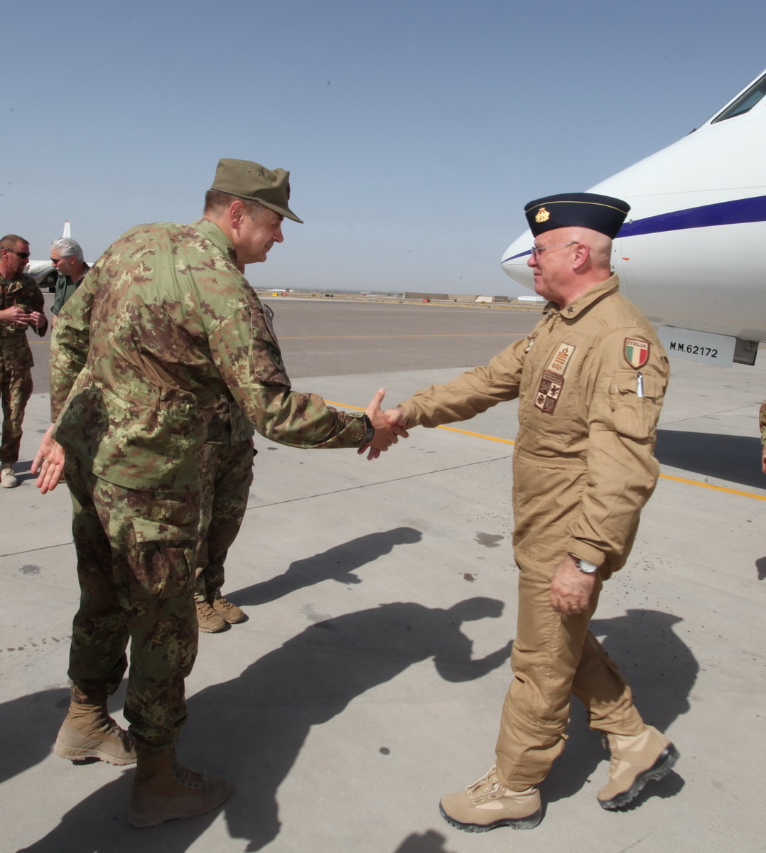 Ad accoglierlo all'arrivo presso l'aeroporto militare di Shindand, nella parte centrale della regione, il colonnello Luca Vitali, comandante dell'Operations Support Advisor / Mission Support Advisor/Mi-17 (OS/MS/Mi-17) Italian Air Advisory Team, accompagnato dal colonnello statunitense David Gossett, comandante dell' 838th Air Expeditionary Advisory Group, al cui interno opera il team italiano nell'ambito del NATO Air Training Command.